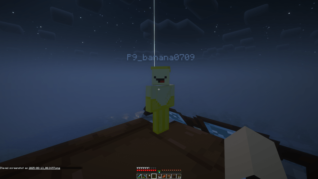 P9 Banana Brad has started working on a base with Sarah called Bay Town (for villagers) and Bay Plaza (for players).